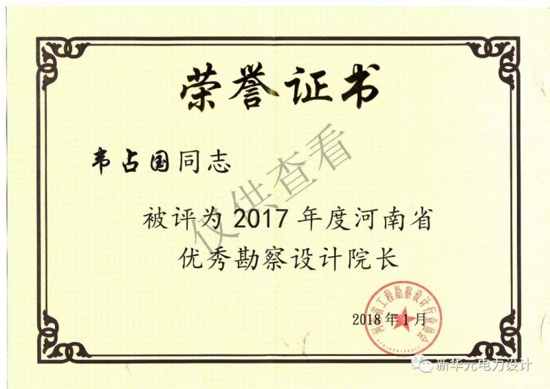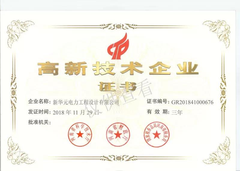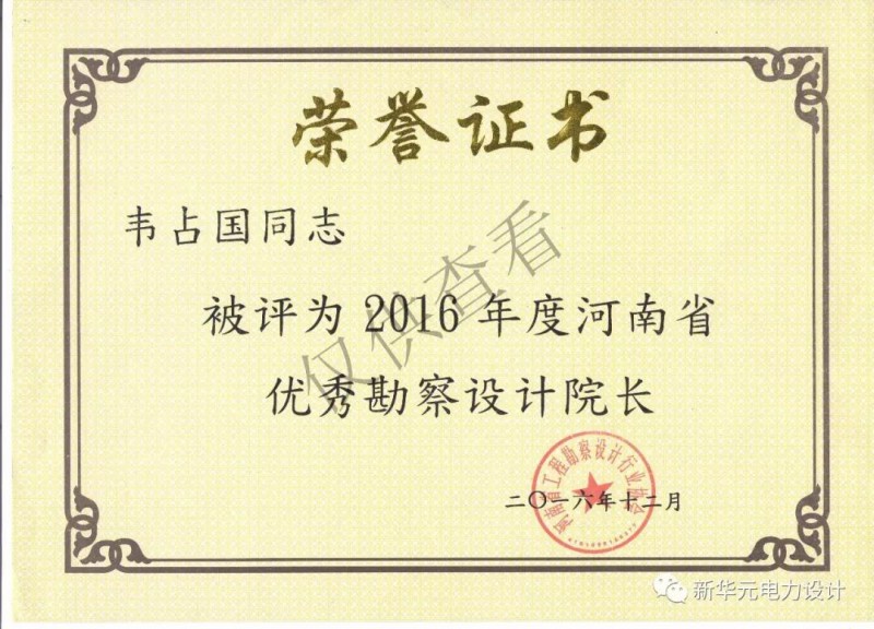 二、河南新华元电力工程设计有限公司荣誉证书-郑州电力设计|电力施工|电力工程总承包|河南电力设计院